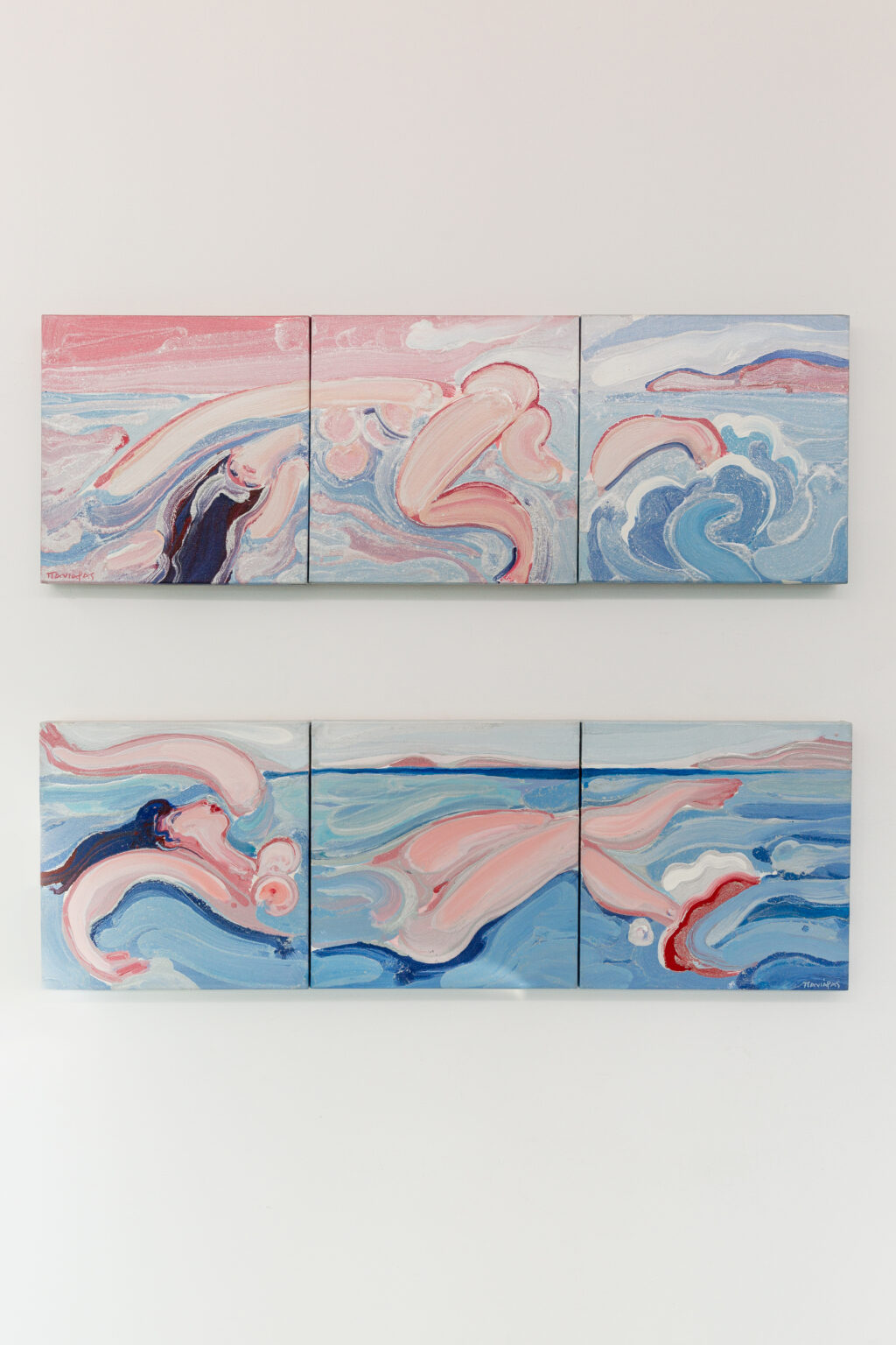 “From memory, yes, and from nostalgia. They may be the girls we fell in love with in the summers in Kiato, or they may be Venus herself—born in Kiato instead of Cyprus or Cythera, why not? To me, a woman in a bathing suit in the sea is a rising Venus.”