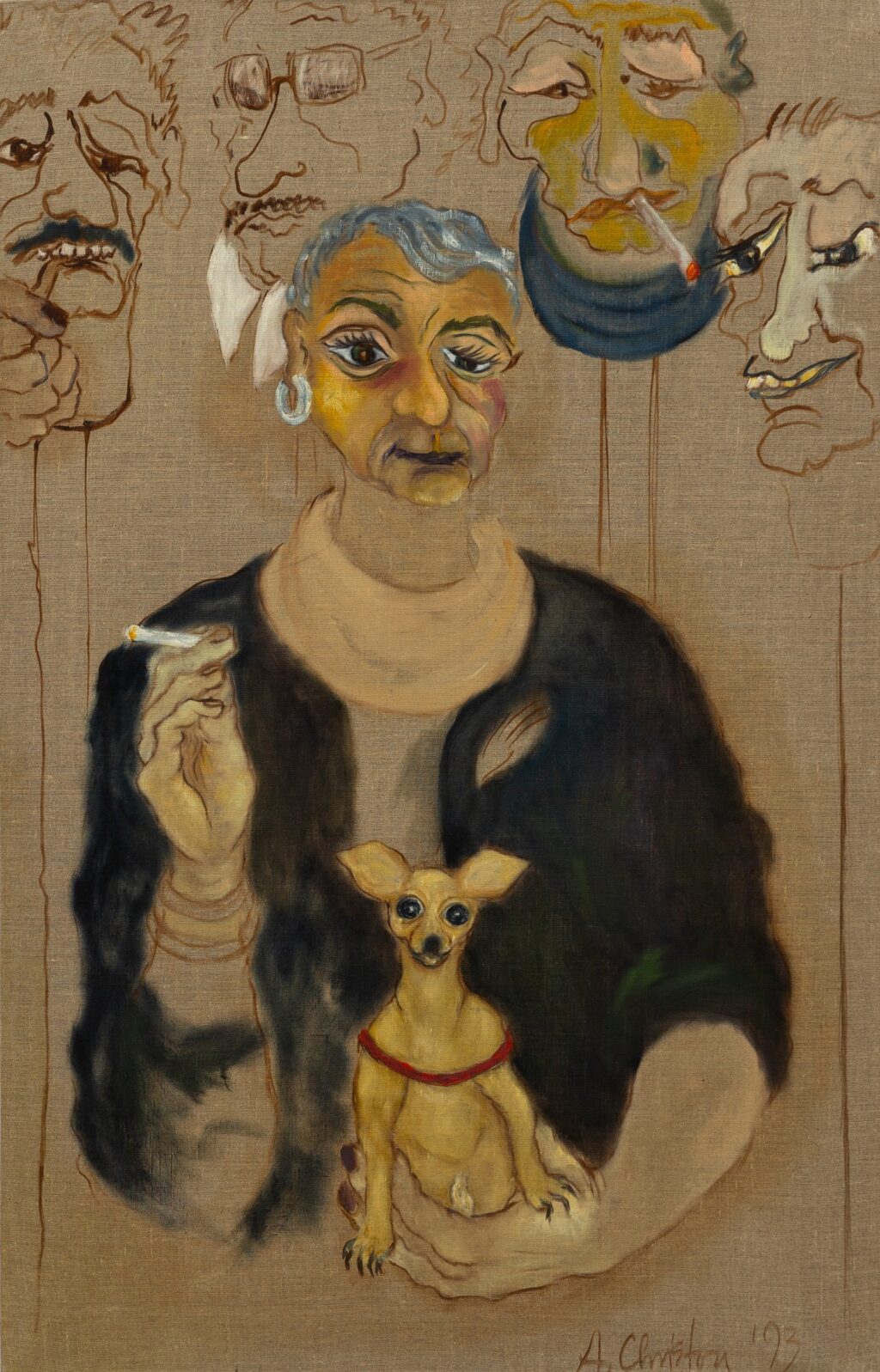 A self-taught painter, Alexandra Christou developed a distinctive visual language that remained largely unseen during her lifetime. Living for extended periods in the United States, Australia, and Germany before settling between Athens and the Aegean island of Astypalaia in 1987, she absorbed diverse cultural influences while cultivating an intensely personal, expressive style.
