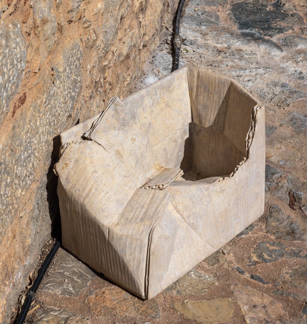Lolis’s work replicates the varied textures and surfaces of its subjects with uncanny precision, revealing an obsessively detailed attention to the material qualities of things. But his practice goes beyond technical virtuosity. His use of marble—a material historically associated with classical Greek art—introduces layers of irony and cultural commentary, while the labor-intensive fabrication of objects that typically epitomize disposability highlights the tension between craft and mass production.