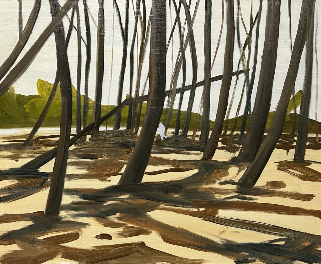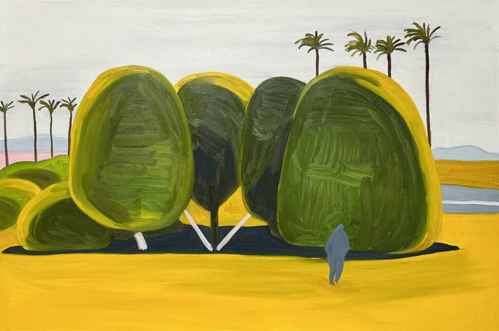 Her works oscillate between objectivity and subjectivity, balancing the factual record of the camera with the personal resonance of painting. Figures are absent or dissolve into their surroundings, leaving nature to unfold in restrained, precise brushstrokes and a soft palette of colors. The resulting canvases evoke nostalgia and solitude while paradoxically inviting viewers to project their own feelings and recollections onto anonymous, universal places. In Kiura’s work, separation itself becomes a point of connection—an unlikely space of shared community.
