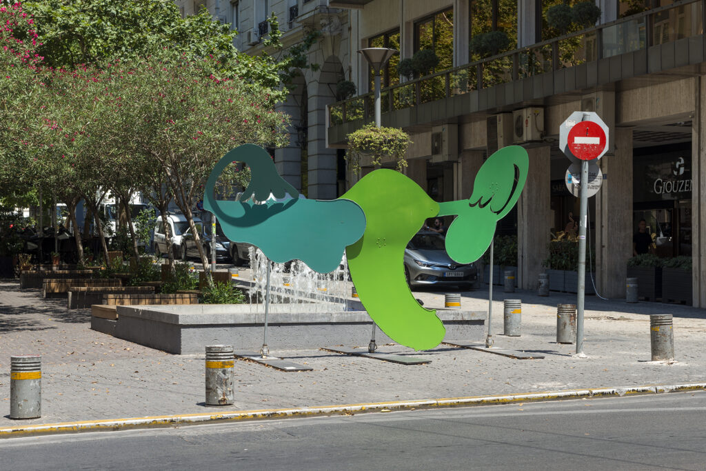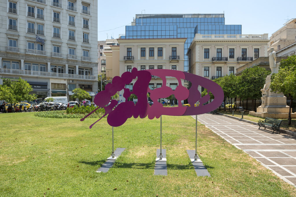 Georgia Sagri Dynamis / Soma in orgasm; as sex, 2017, aluminum, acrylic spraypaint, various metallic parts 215 x 400 cm, Art Collection Telekom.
