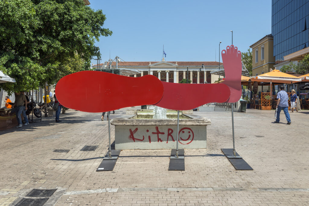 Georgia Sagri Dynamis / Soma in orgasm; as leg, 2017 aluminum, acrylic spraypaint, various metallic parts 126 x 406 cm, Art Collection Telekom.