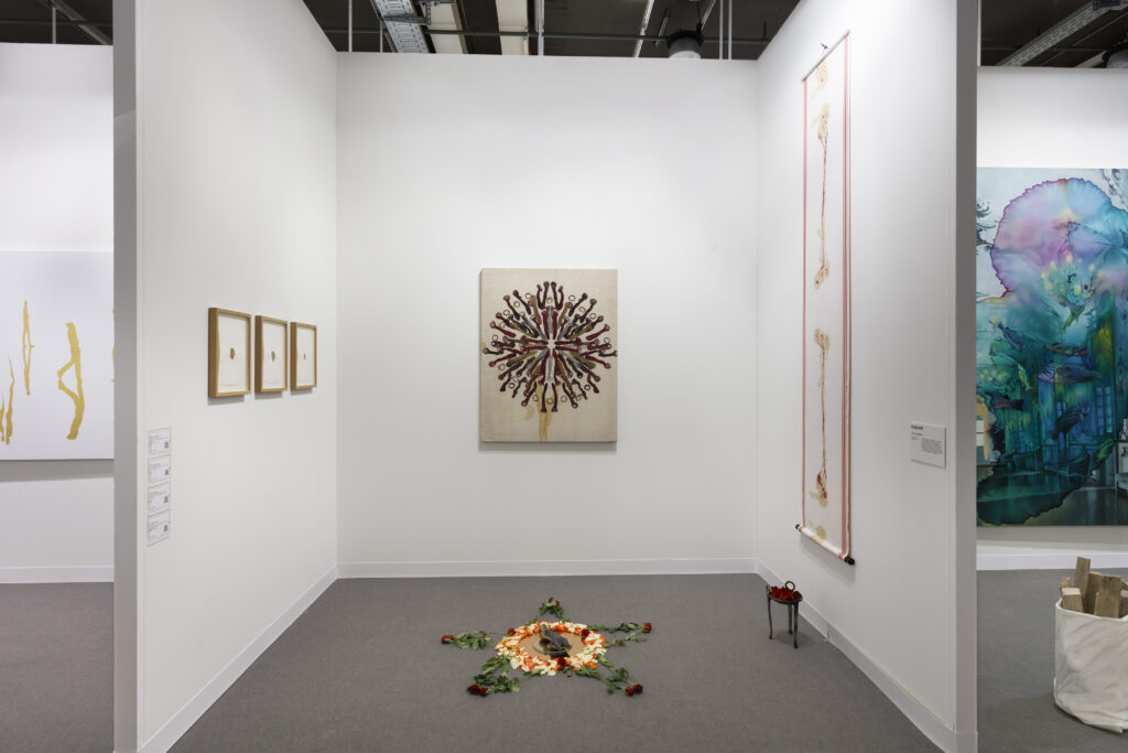 The Breeder presents a solo exhibition of Chrysanne Stathacos (b. 1951) for the Kabinett sector, showcasing the artist’s deeply spiritual and feminist practice. A radical voice of her time, Stathacos has continuously pushed boundaries with her multidisciplinary work, blending painting, installation, and performance to explore themes of loss, body politics, and transformation. With a strong institutional presence worldwide, she integrates materials like roses, hair, and ivy into works that evoke cycles of decay and renewal. The presentation features key pieces, including a 1990s Condom Mandala painting, intricate Rose Petal drawings, a scroll piece, and a floral mandala installation, creating a spacefor contemplation and empowerment.