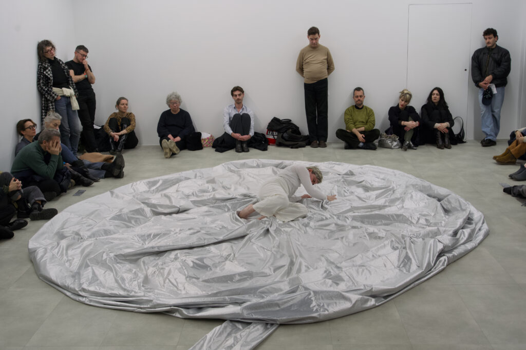 Opening the program, Greek artist Georgia Sagri explores the body’s capacity for transformation. In her practice, drawing precedes performance, serving as a space where gestures take shape and emotions are inscribed.