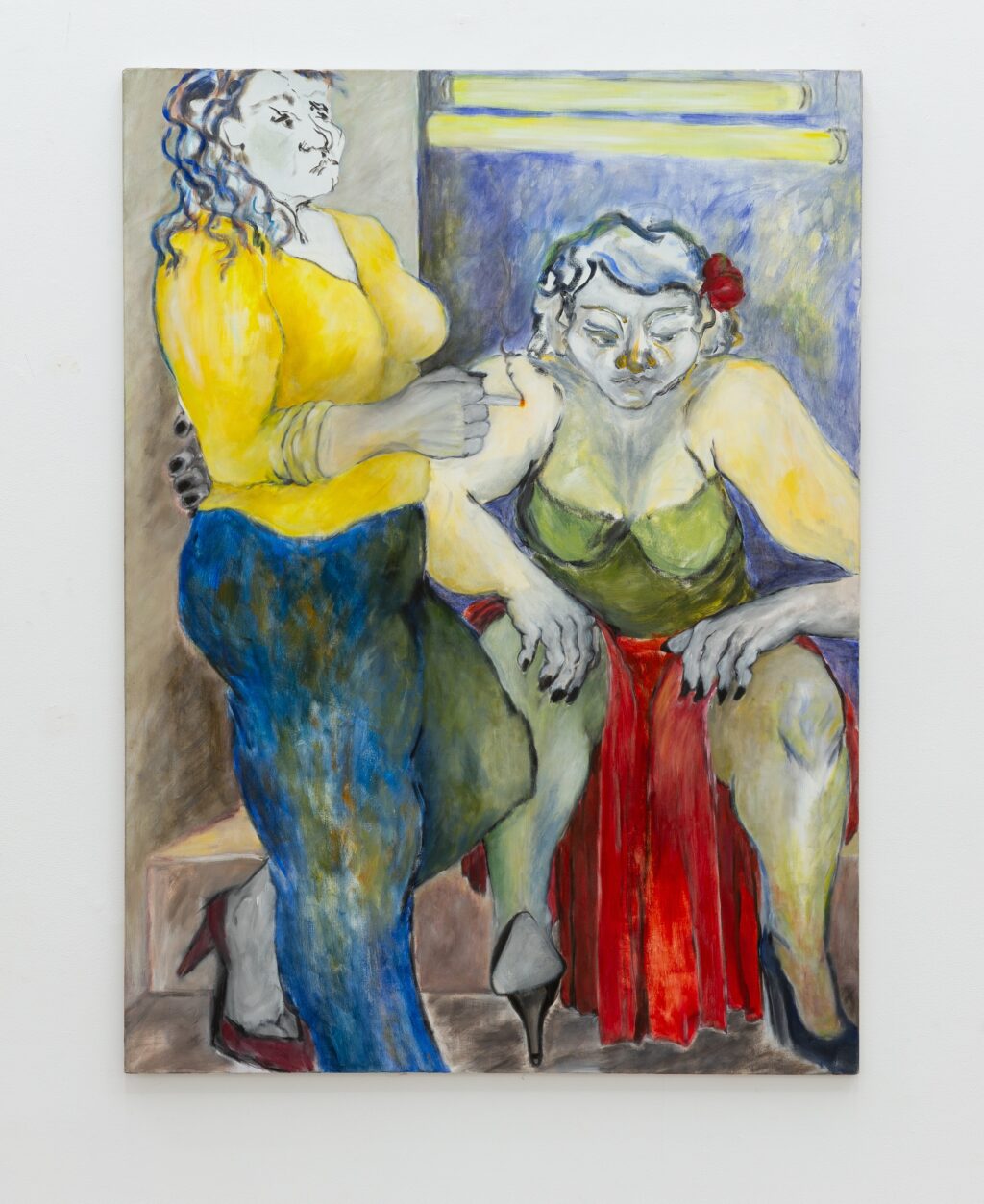 Christou does not moralise. She does not dramatise their vulnerability nor romanticise their hardship. Instead, she places them at the centre of the canvas and allows them to occupy it fully. A hand on a hip, a cigarette mid-gesture, a sideways glance — these become gestures of autonomy.